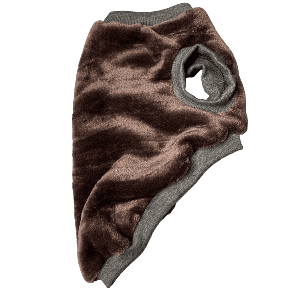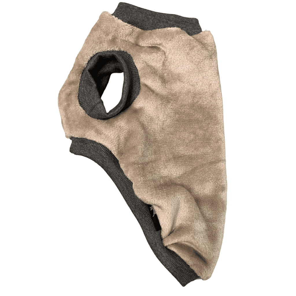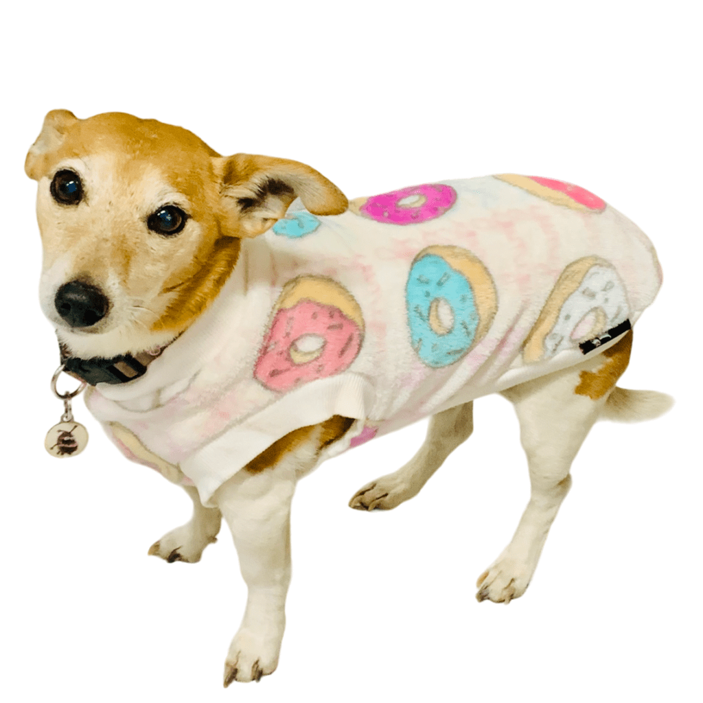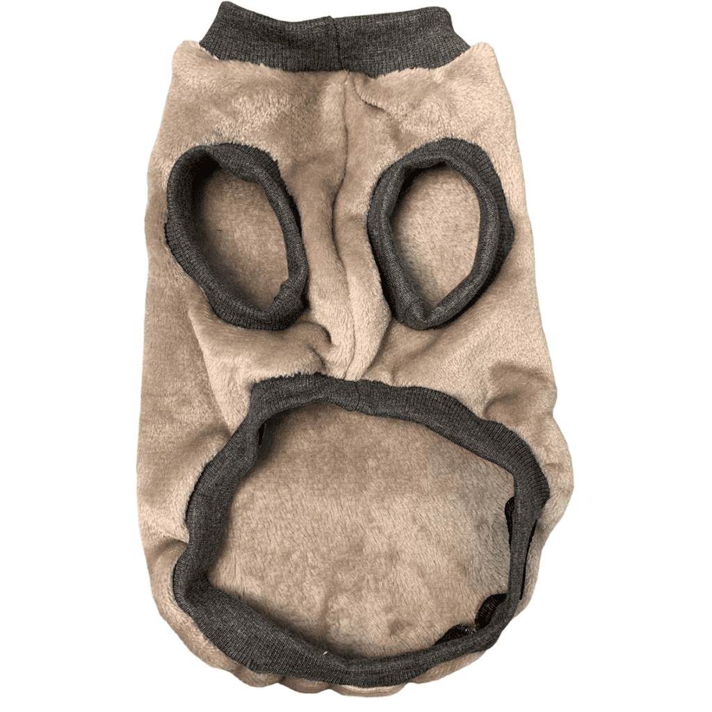 This is an adorable soft Coral fleece dog coat with 100% cotton ribbing on the neck, arms and back, helping your pups get through the colder days.